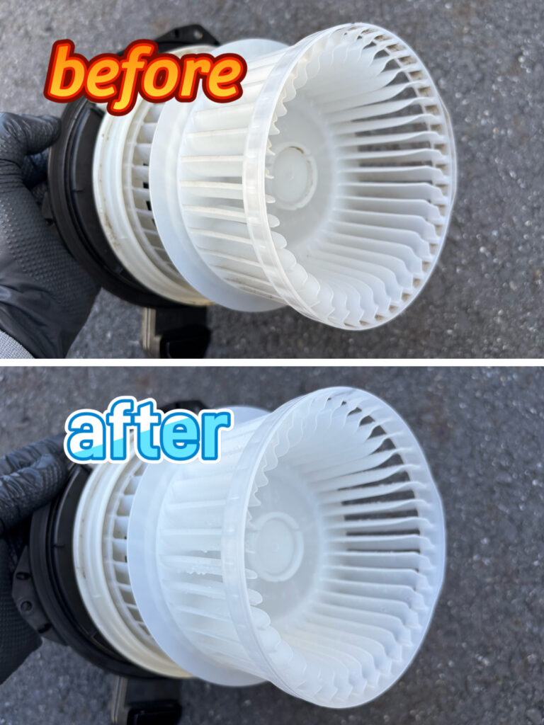いろんなエバポレーター洗浄剤を試してみたが効果を感じられずご依頼頂きました🚙